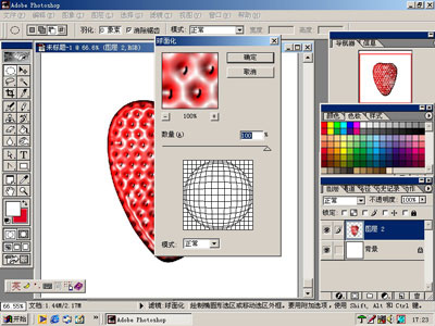 十二、将图层1与图层2合并后进行球面化处理(这时要取消掉选区)