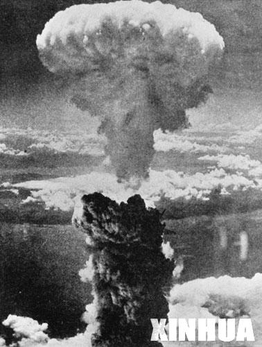 这张资料图片显示,原子弹在长崎爆炸后,蘑菇云直冲云霄。