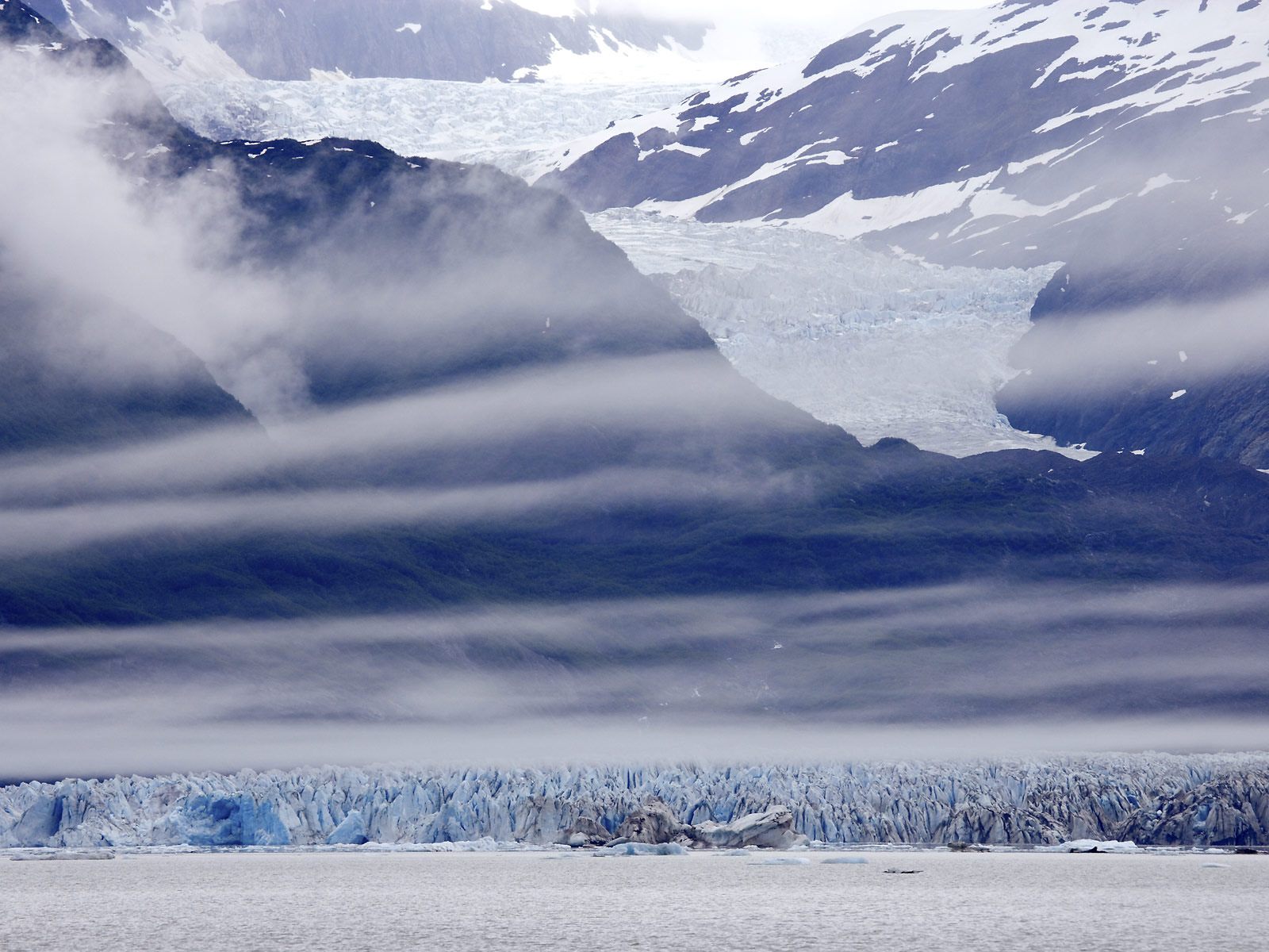 阿拉斯加州Alsek湖的冰河与云
