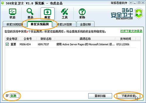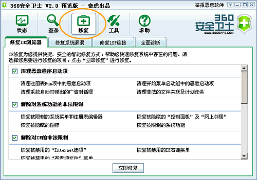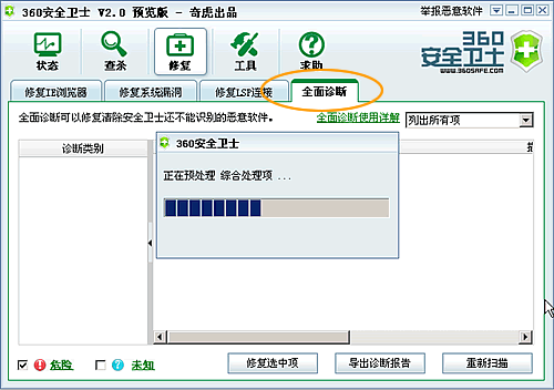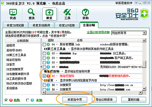 17、全面诊断的结果,点击“修复选中项”可以对选中的项进行修复。