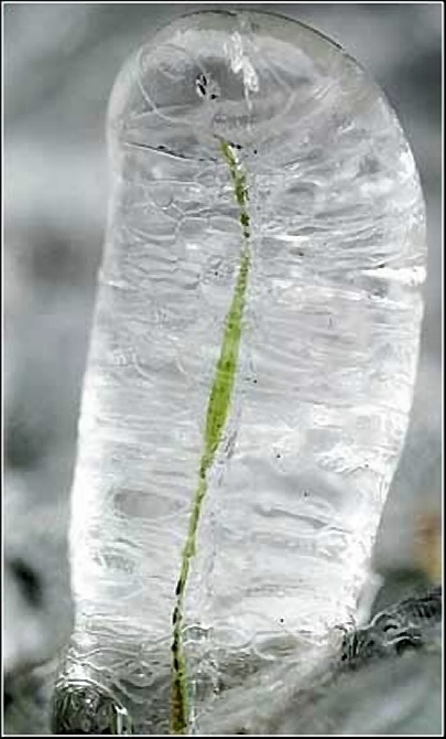 冰茧:1月6日,美国Oregon的罗斯伯格,路边的一片草被冰块包裹着