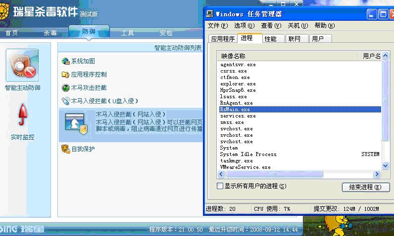 之后病毒试图结束瑞星但没有成功。