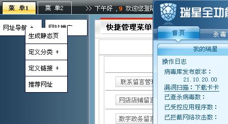 看到了么,最新版本的瑞星,只能弹出二级菜单。