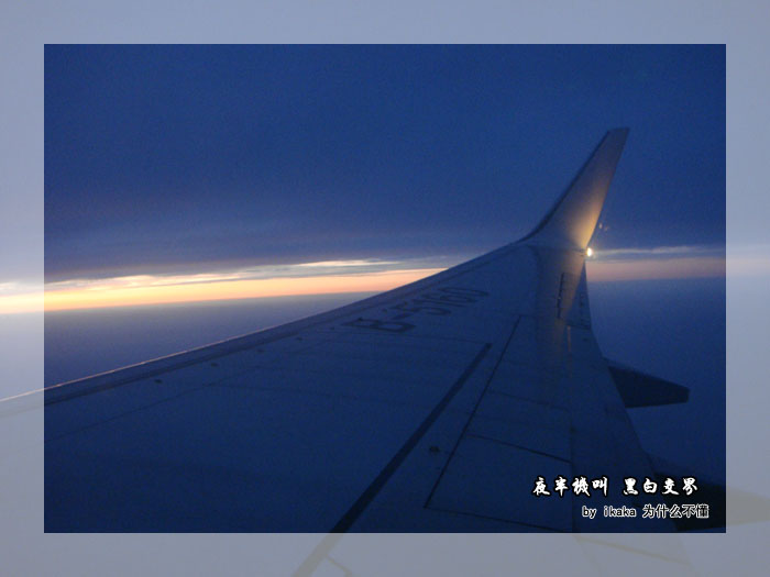 是啊,那时候晚上7点起飞的,一看西边,还是亮堂堂的,因为那时西部还是大白天,所以就拍下来了