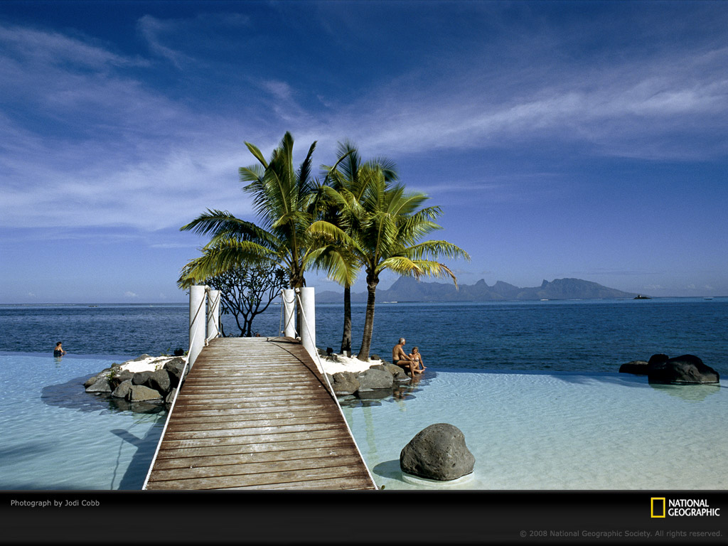 码头延伸至一个被塔希提岛宝蓝色海水所包围的棕榈小岛上。法属波利尼西亚是法国一个海外半自治领地,它由118个岛屿和环礁组成,而塔希提岛则是其中之一。法国基于在这里以及太平洋其他地方所拥有的主权,晋升为太平洋上仅次于美国的第二大领土拥有国。