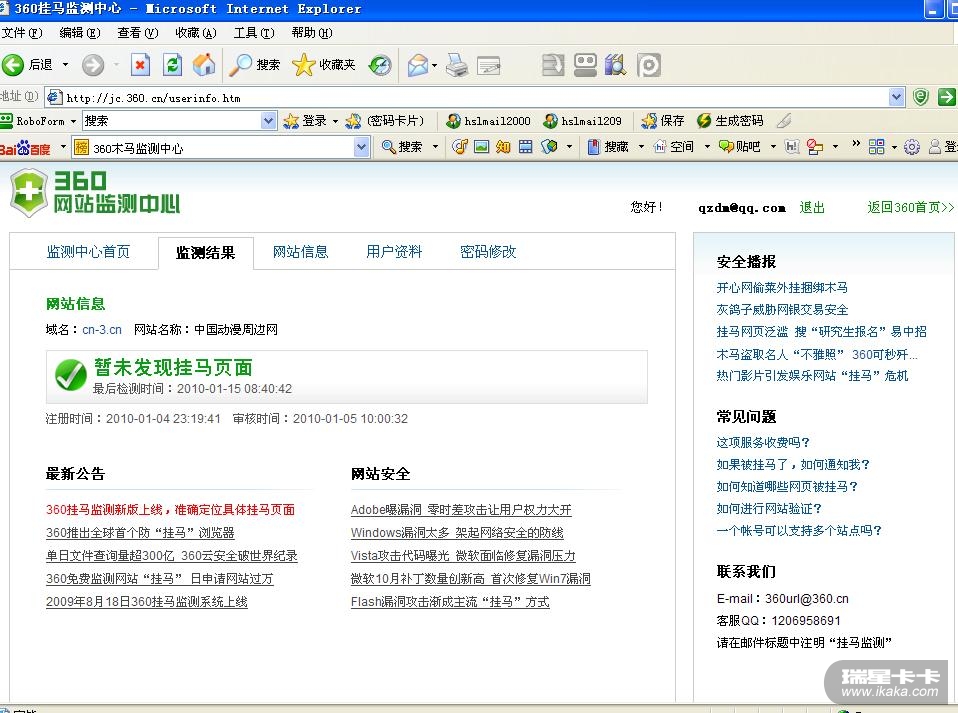 求助,已经加入瑞星云,显示安全认证,怎么瑞星还报毒 site.ikaka也显示毒挂马