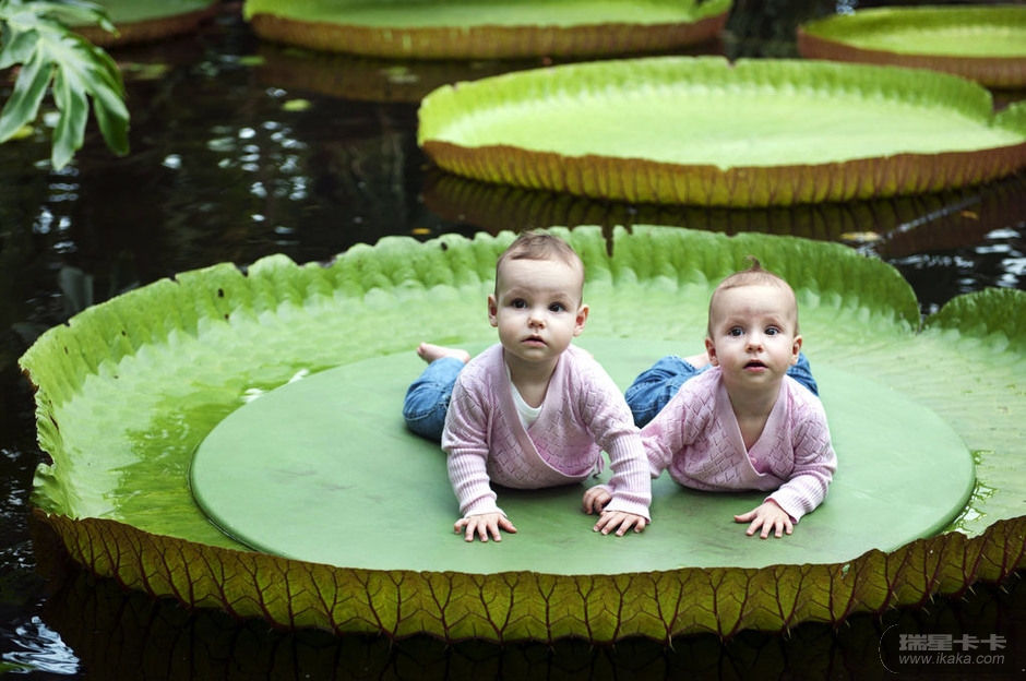 5、当地时间2010年9月1日,荷兰鹿特丹,两个小宝宝趴在巨大的王莲叶上。王莲为睡莲科热带著名水生庭园观赏植物,具有世界上水生植物中最大的叶片,直径可达3米以上,叶面光滑,叶缘上卷,犹如一只只浮在水面上的翠绿色大玉盘;因其叶脉与一般植物的叶脉结构不同,成肋条状,似伞架,所以具有很大的浮力,最多可承受六七十公斤重的物体而不下沉,这种惊人的承载力令其他水生植物望尘莫及。
