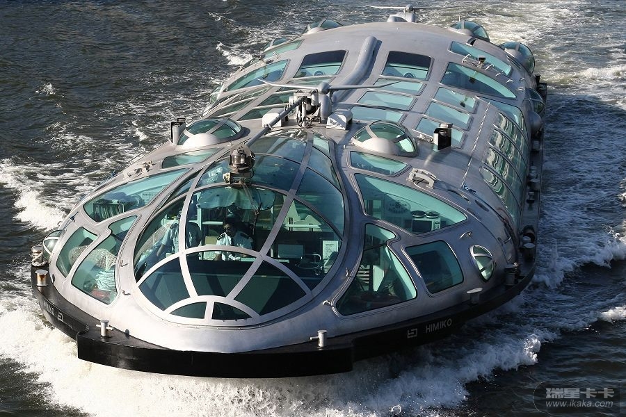 11、2010年8月26日,日本Sumidada河,Himiko水上巴士。Himiko水上巴士由日本漫画大师ReijiMatsumoto在漫画中设计的,一种未来派类似飞船的工具。