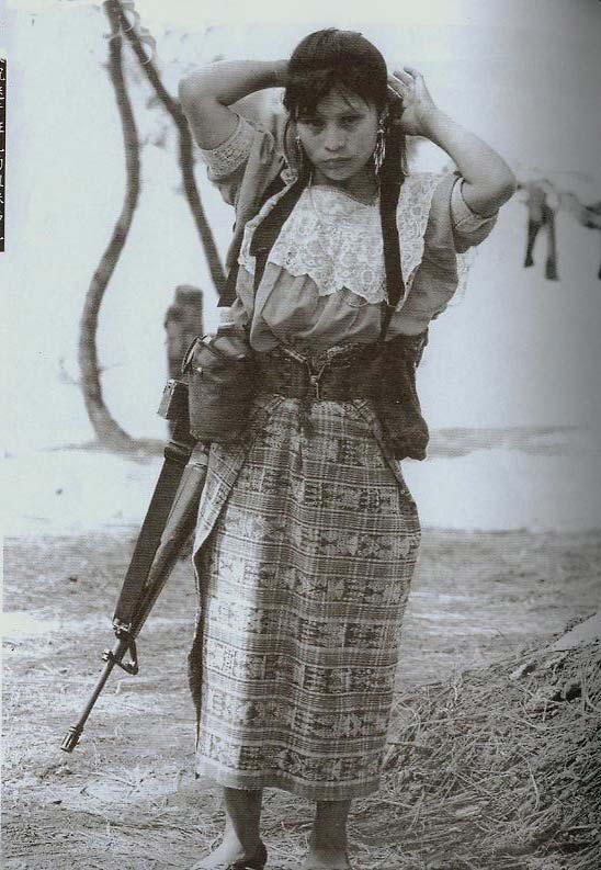 在危地马拉首都危地马拉城北部200公里处的民族革命联盟游击队训练营中,一名游击队女战士正在梳理头发。这个年轻的女孩身穿服装,还佩戴着简单的首饰,只要拿下肩上的枪,她就完全是一个普通姑娘了。