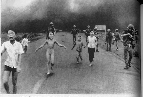 最弱小的平民孩子承受了最先进的武器----凝固汽油弹的打击。这群奔命的孩子仿佛被魔鬼附了体,这个魔鬼即战争。有幸的是,这张照片的发表促使越战提前结束。