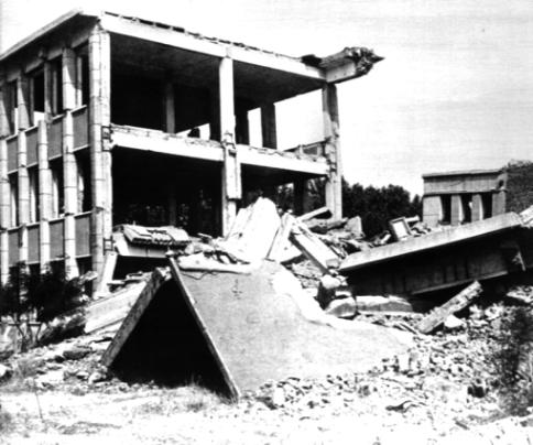 唐山市河北省煤矿设计院,砖混结构的楼房局部倒塌。