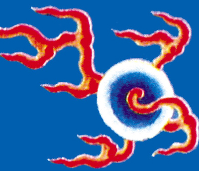 欢欢的头部纹饰源自敦煌壁画中火焰的纹样。他性格外向奔放,熟稔各项球类运动,代表奥林匹克五环中红色的一环。