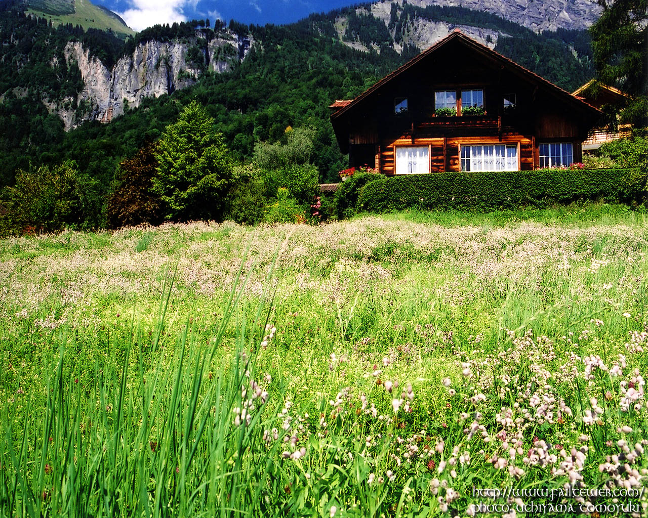 那是欧洲最大、最雄伟的山脉。绵延不绝的山峦顶着白色的山尖,在阳光下闪着金光。目光收回,脚边是芳草碧连天的丘陵和无边无际的繁花。田垄、树林、山岗仿佛在练着瑜珈,个个将身子延伸得很长;不知名的小湖、小河,像孩子眼角挂着的泪水,透着晴空般的蓝,荡漾着雪山的影子;芦苇草、蒲公英等各色野花舒舒坦坦、整整齐齐地围着明镜般的湖面。
