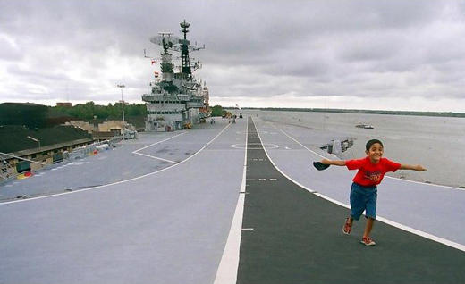 22,一名儿童在印度军舰上游玩。(10月11日)