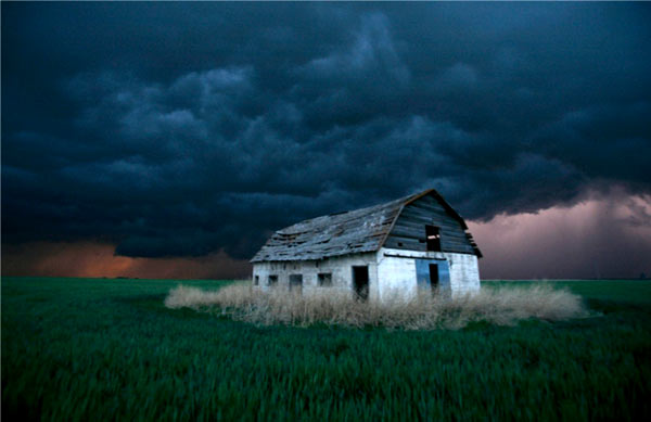 5月22日,美国堪萨斯州Ogallah,电闪雷鸣中,麦田里,一座古老的谷仓静静地矗立在那里。 (图片来源:美联社)