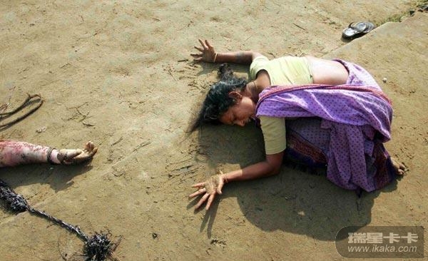 2004年,印度南部的卡塔尔洛遭遇了非常严重的海啸,超过17.5万人在这次天灾中丧生,图为一妇女正为失去亲人而悲痛欲绝