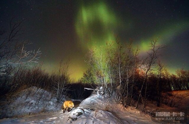 11月6日下午4点半,育空河上游壮美的落日景象,橙色的光柱极具科幻色彩。这幅作品由摄影师安德里亚·玛格拍摄。