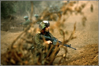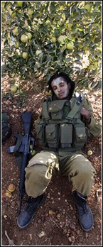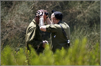 Czech Press Photo一等奖作品。以色列和黎巴嫩边境,一名以色列士兵使用对讲机通信,而其他几个士兵则抬着一名伤员上直升机。