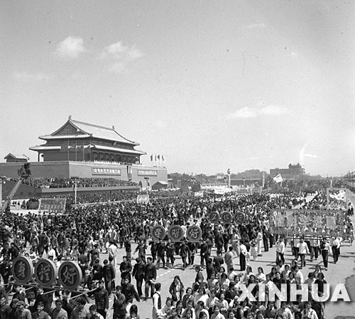这是1956年5月1日,北京举行群众游行,庆祝“五一”国际劳动节。 新华社发