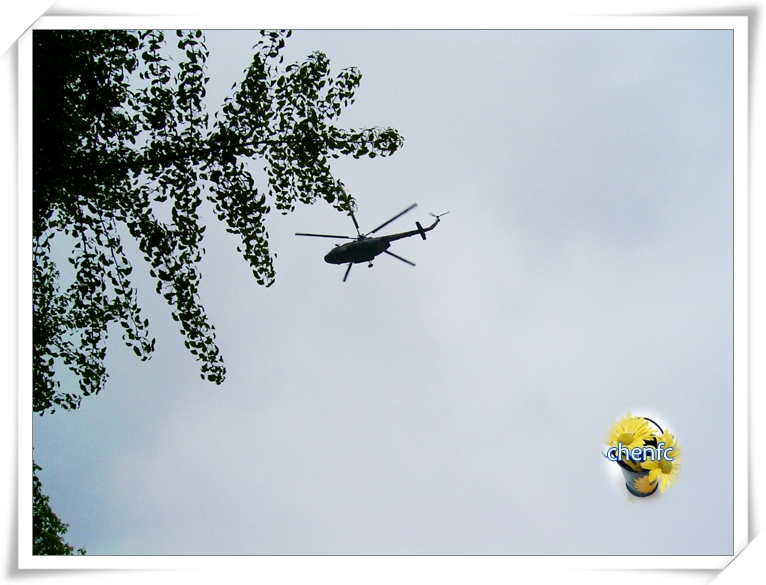 直升机也来观花咧!