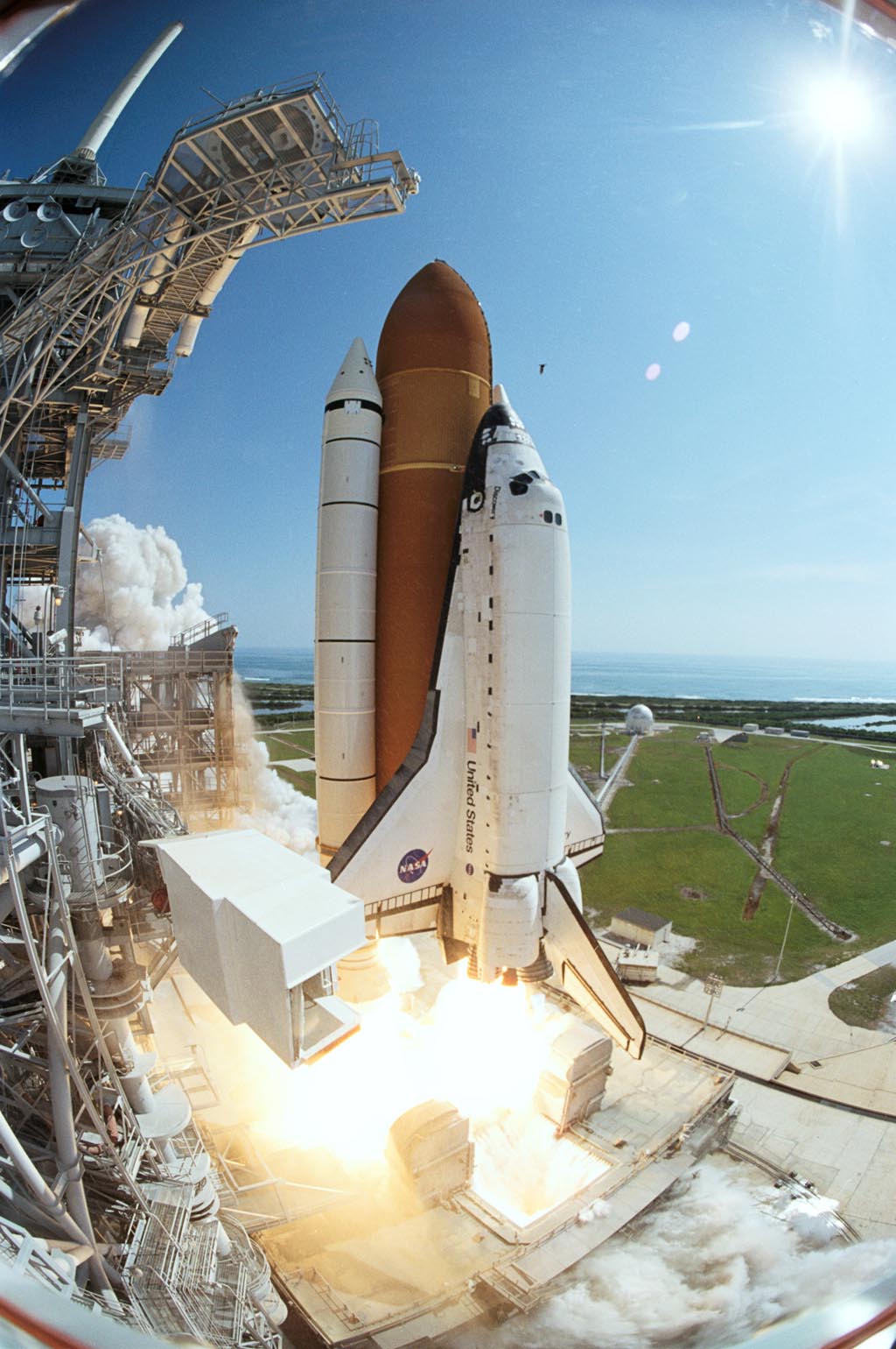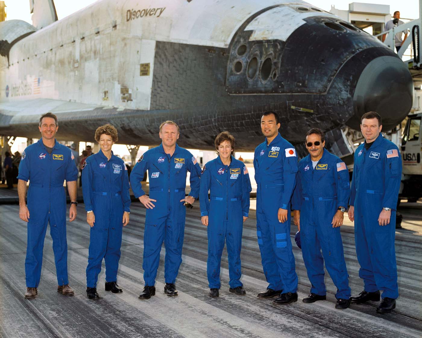 2005年8月9日早晨5时11分,加利福尼亚州爱德华兹空军基地,着陆以后停在跑道上的发现号航天机。