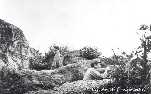志愿军吃饱喝足之后依托坑道工事,积极开展冷枪冷炮活动,大量消耗敌人。图为志愿军狙击手在阵地上射击敌人。(皮定军下属部队的一个战士,狙击杀敌260多名!)