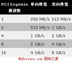 PCIe通道数及对应带宽