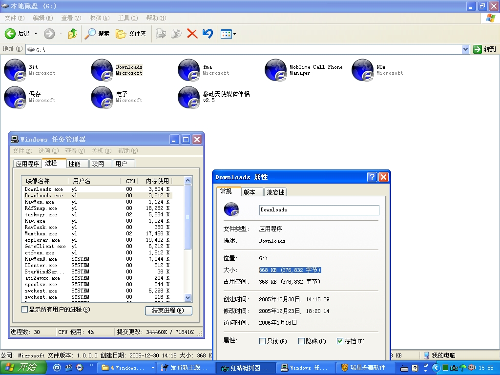朋友拿U盘来用后,就中毒了,电脑G盘H盘所有文件都打不开了。图标也变成这样了。用瑞星2006最新版也查不出毒,诸位高手谁能告诉我该怎么办啊。。。