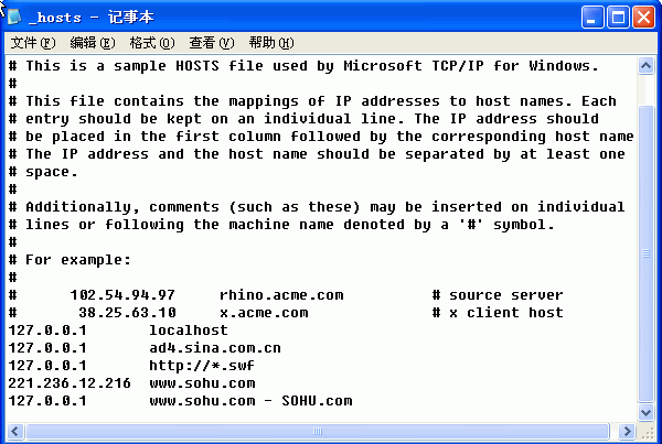 我做了个试验在里面加了127.0.0.1 www.sina.com.cn