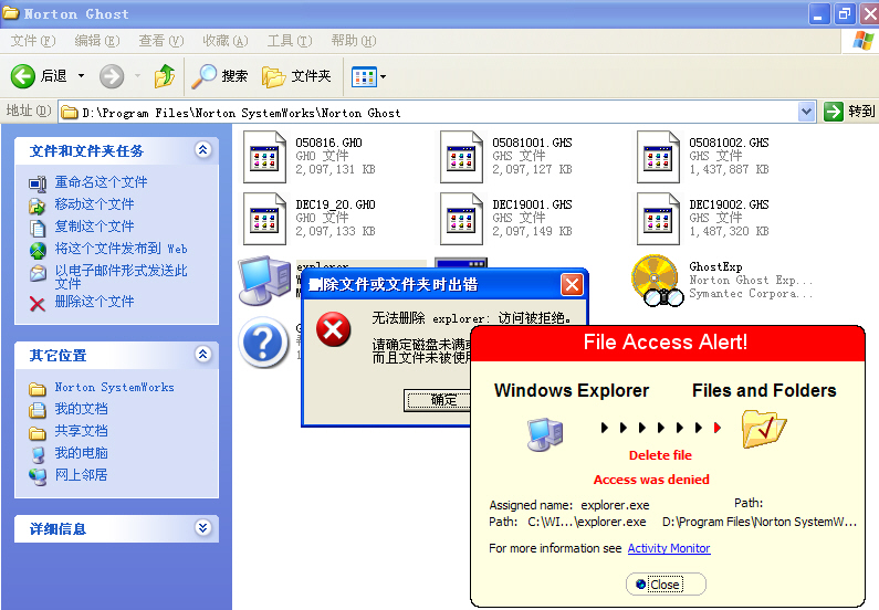 3、管用吗?考查一下。将“资源管理器”复制到D:\Program Files\Norton SystemWorks\Norton Ghost目录下,然后删除它。