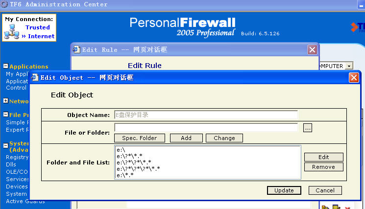 还是用懒人的懒办法——用TFP2005的“文件保护”。试了一下,结果似乎还算满意。之所以说“结果似乎还算满意”,是因为这个措施还未经过实际的网络入侵检验,下面只是我自己在系统中初步试验的结果。