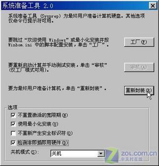 5.重新安装硬件     如果你的电脑上安装了多个硬件,但是确认它们又不再有用了。那一个个地卸载并不是明智之举,因为多数人并不知道这些驱动散落在硬盘何处,根本不可能弄干净。这时我们可以将所有不用的硬件取下,然后把Windows安装光盘插入到光驱中,并打开光盘SUPPORT\TOOLS文件夹,双击DEPLOY.CAB文件,把其中的所有文件解压到一文件夹下(如d:\Sysprep),双击其中的sysprep.exe文件,并按下“确定”按钮接受警告信息。并选中图2窗口中“不重置激活的宽限期”、“使用最小化安装”和“检测非即插即用硬件”复选框。按下“重新封闭”按钮,机器会自动关闭。重新启动计算机后,Windows XP将会让我们接受协议,输入序列号,并可以指定系统管理员和密码,同时会重新检测硬件,并重新安装驱动程序。因为Windows重新检测并安装了驱动,所以这样系统中的硬件是“干净”的,不再会存在冗余的驱动,系统自然会快出许多。