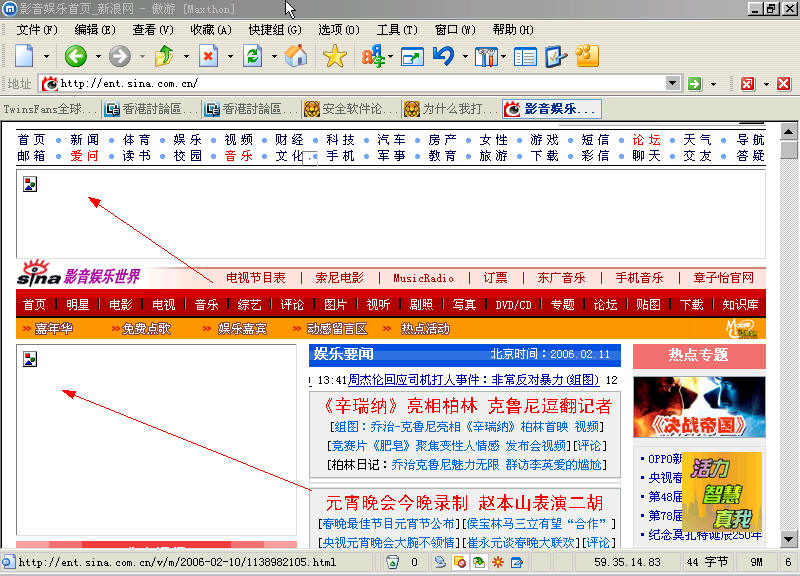 你打开新浪网站,然后点娱乐新闻,看看我被屏蔽了的两个窗口是什么内容。
