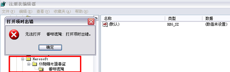 卸载豪杰超级影霸9后,注册表里遗留下Herosoft项目下出现乱码,无法删除、打开、重命名,请问有谁知道这是怎么回事?见图