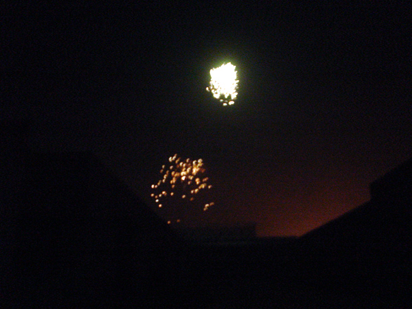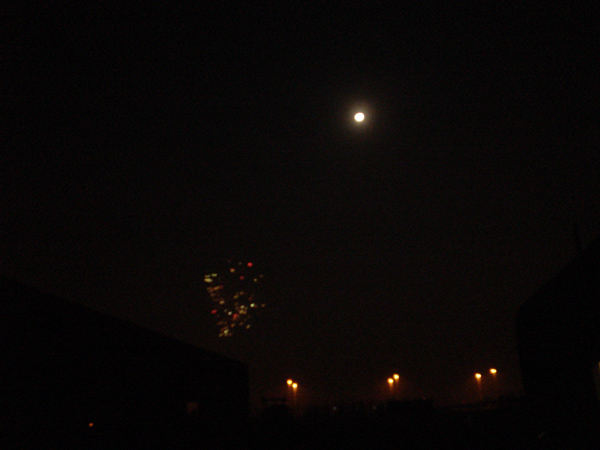还看得见月亮,本来想在月亮的背景抓拍烟花,可是手慢了点