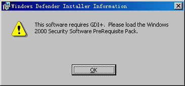 双击WindowsDefender安装程序,弹出如图提示