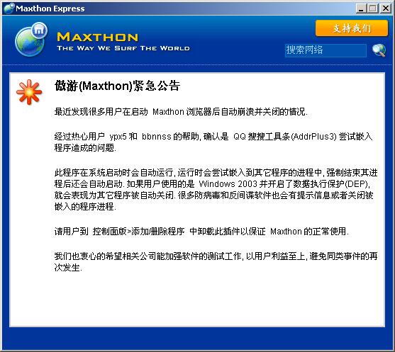 提醒各位网友注意,遨游 的一个重要公告!傲游(Maxthon)紧急公告