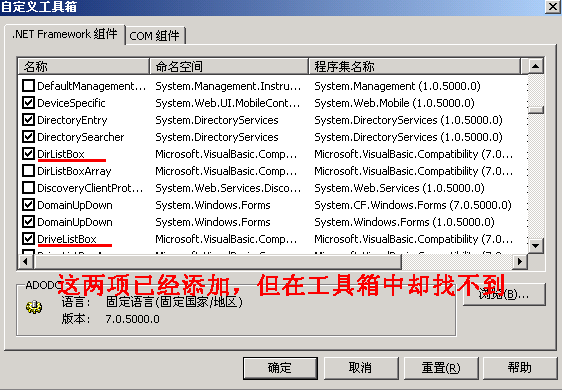 已添加了DirListBox和DriveListBox控件