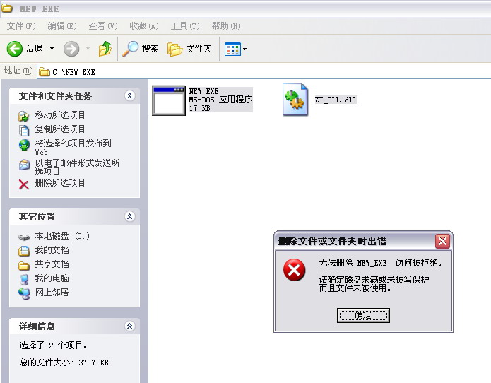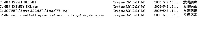 在C:\NEW_EXE里发现木马,但我在C盘下没找到这个文件夹,后来用“定位文件”找到了这个,但是删确怎么都删不掉,于是重启,在安全下手动删也删不掉,在用KV杀毒竟然说是没发现病毒,用卡巴也查不出毒,于是在正常模式下在杀,看能不能查到,情况还是一样,都没查出毒来,但KV确没隔一会就报警说发现病毒,但删又删不掉,以下3张图片能说明,希望知道怎么杀的朋友说下,谢谢了