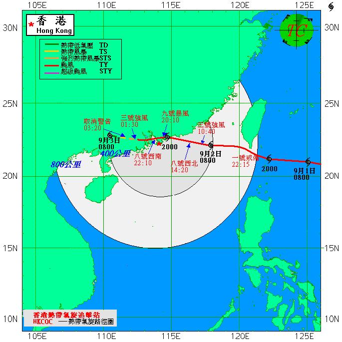 5)图七为近几年最为怪异的台风之一“百合(0116)”(Nari )的路径图,看得眼花吧。我们再来看看中央气象台的这篇文章就知道怎么个离谱法了。“台风百合2001年9月6日生成于东海南部海海面上,在海上漫游了9天转了一个半圈后折向西南方向移动,9月16日午夜在台湾岛东北部的宜兰附近沿海登陆,从台北到台南狂袭台湾岛近50个小时,豪雨和狂风夺走了80多条同胞的生命,20多人失踪,100 多人受伤;交通中断、电力设施破坏、美丽的家园被毁,变成汪洋泽国;学校停课、股市停盘….,所受灾害近百年罕见。到19日凌晨,它终于因能量耗费严重, 在台南减弱为低气压。可20日凌晨进入南海海面后,能量和水汽得到补充,又死而复生,再次加强为热带风暴,并折向偏西方向移动,于上午10点30 分左右在广东省朝阳到惠来之间沿海再次登陆,又给那里的人们带来严重的台风灾害,即日晚上在惠来境内减弱为低气压,生命史长达15天之久。我们说台风“百合”怪,除了生命史超长外,其一是从生成到消亡,强度四度加强,四度减弱,甚至死而复生。即热带风暴→强热带风暴→台风→强热带风暴→台风→强热带风→台风→强热带风暴→热带风暴→热带低压→热带风暴→强热带风暴→热带低压→消亡。台风的这种生命史是非常罕见的;其二是路径奇特,它在海上转圈漫游了9 天之后,折向西南方向移动登陆台湾。登陆后没有迅速西南移进入海峡,反而在岛内向南移动, 从台南入海后又折向偏西方向移动,在广东再次登陆。这样奇异的台风路径,历史罕见;其三是在岛内向南移动的过程中速度极慢,在岛内停留的时间长达近50个小时, 这在台湾历史上是没有过的。”(摘自中央气象台潆绕)这个台风的颠峰强度是100knots,三类飓风水平。登陆潮阳的时候是强烈热带风暴的水平,对汕头造成比较严重的影响。