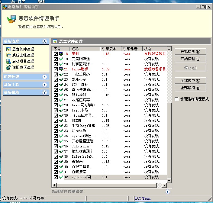 3.我的电脑中发现有以下几个木马:Irjit木马,jiaozhu木马,HWS木马,SPOOLSV木马,我用一个恶意软件清除软件清除了后显示贴图中的结果,不知道对电脑有没有影响.