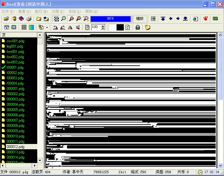 昨天我下了一套易中天文集,其中有几本是pdg文件,我于是下了超星阅读器软件,装时系统提示请转到控制面板来安装和配制系统组件,这我就不懂了,另外我又找了一套绿色的超星阅读器可打开后,文件出现横的不规则条纹,看不到字,请问有懂这些的朋友说一下,谢谢.