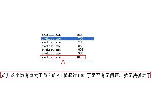 svchost.exe PID值是:1712,听朋友说svchost.exe PID值如果大于1300就值得怀疑,我问题是:svchost.exe PID值是多少才是信任的,安全的,不值得怀疑