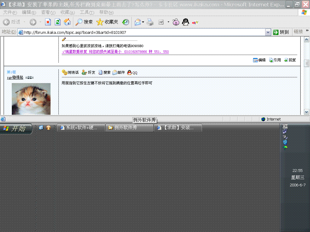 【求助】安装了苹果的主题,任务栏跑到桌面最上面去了?怎么办?