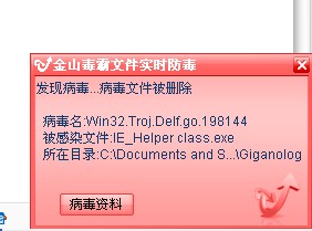 求助!!我的电脑中了这个病毒Win32.Troj.Delf.go.198144