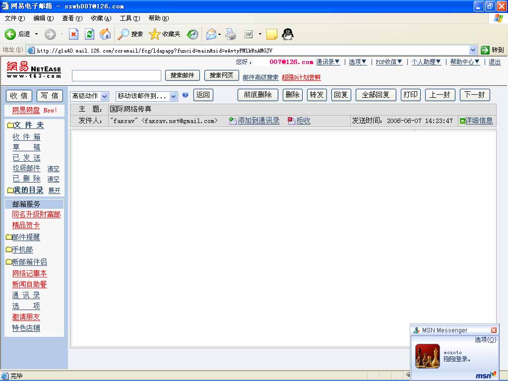 试了一下!看样子是有软件冲突!126的邮件可以看了!但hotmail还是无法新建邮件,是不是hotmail有问题???有没有朋友用hotmail的也去看一下!!