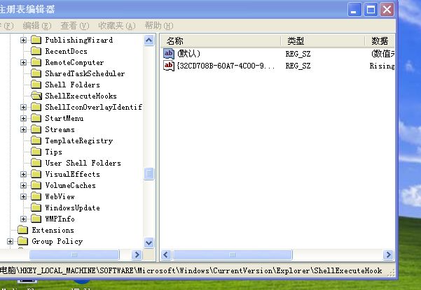 HKEY_LOCAL_MACHINE\SOFTWARE\Microsoft\Windows\CurrentVersion\Explorer\ShellExecuteHooks下的默认直和你的不一样啊