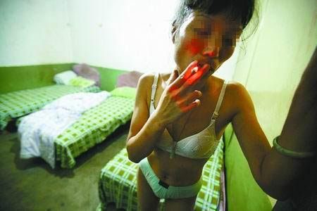 睡在床上的郭洪浦一家三口是贵州盘县人。郭今年31岁,三年前带着老婆杜吉会和孩子来到瑞丽。妻子杜吉会恨丈夫,丈夫在外打工时不仅自己染上毒瘾,还骗她说吸这东西能减肥,慢慢地让她也上瘾了。他们知道瑞丽的毒品价格低,就来到瑞丽。但是在瑞丽找工作不容易,来了一个月还没有找到工作,带来的钱也吸光了,身边还有一个儿子要吃要住,怎么办?杜吉会清楚地知道,丈夫是一个胆小怕事的人,只知道吸毒什么事也干不了,她只好出卖自己的身体。一晃三年过去了,丈夫从没有干过活赚过钱,靠她每天去接客养这个家。她每天接客2~4名,每次交易能赚得30元左右,只够夫妻俩每天的房租和毒资。杜吉会得了一身的病,比刚来时消瘦了很多。