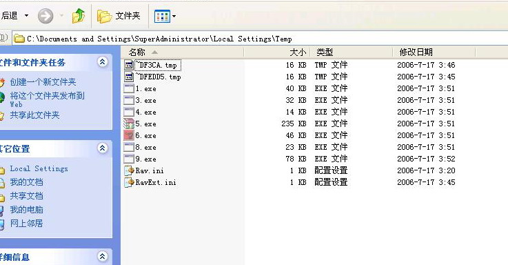 3、用win98启动盘进入到C:\Documents and Settings\SuperAdministrator\Local Settings\Temp下删除了所有文件