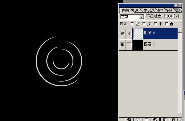 新建一个400X400px的图,将背景填成黑色。新建一个图层(图层 2)用椭圆选择工具作下图的选区,并填充亮灰色(D9D9D9)